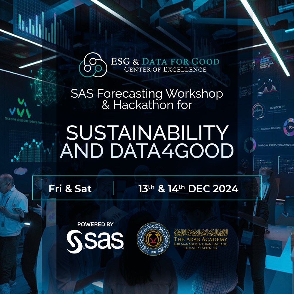 The Arab Academy for Management, Banking and Financial Sciences 9th Zone Service Center, Dahshour Route, behind the British School in Egypt, Sheikh Zayed City, – Giza, Egypt, Giza, EgyptOverview Join the SAS and AAMBFS Forecasting Workshop and Hackathon for Sustainability and Data for Good , powered by ESG Data for Good Center of Excellence. Unlock your potential to dive into the world of advanced forecasting. This unique event is your gateway to mastering the art and science of forecasting, exploring real-world applications, and …